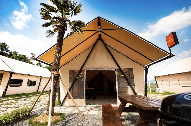 그리고 경남고성에 위치한 또다른 글램핑장 오션포레에요. 경남 고성군 회화면 회진로 321에 위치한 곳인데요. 여긴 뭔가 살짝 이국적이고 새로운 느낌이 들어서 가보고 싶더라구요. 글램핑장이 30동이고, 팬션 디럭스룸 2동, 패밀리룸8동과 각종 부대시설이 가득한 대규모 글램핑장입니다.